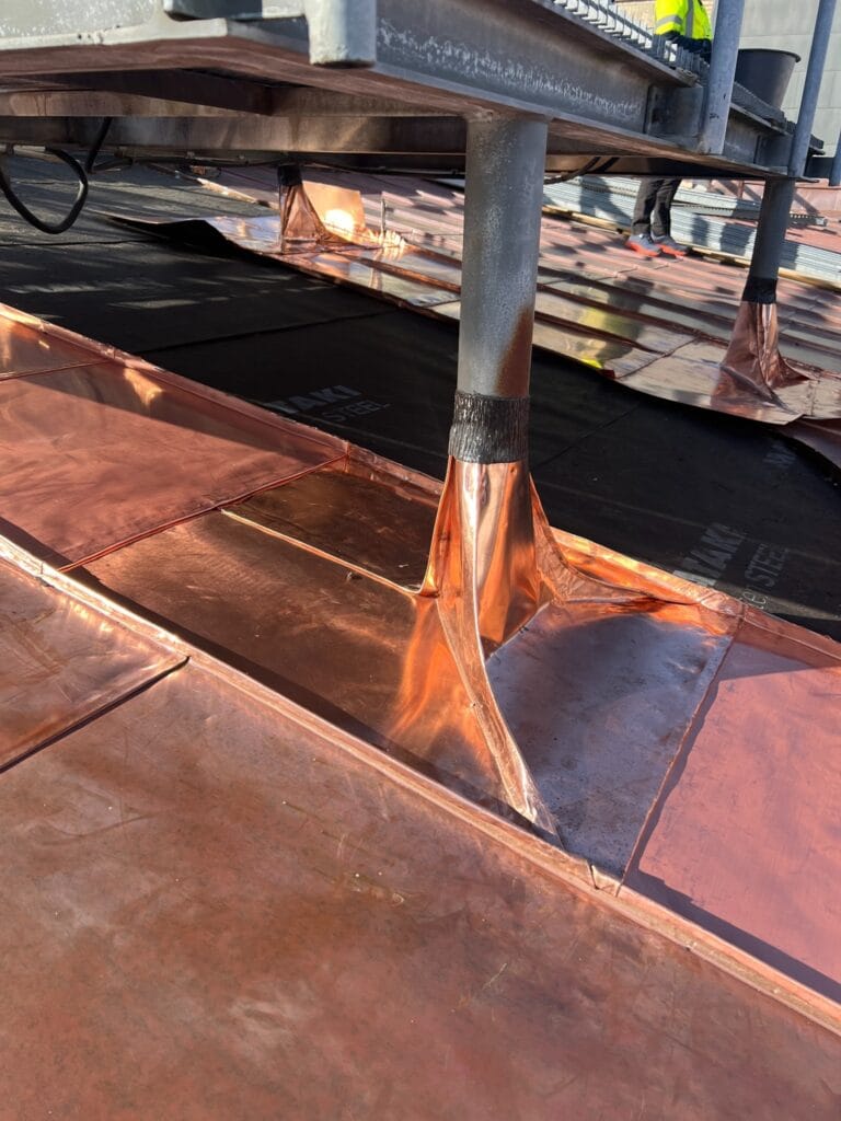 Vi demonterade varsamt den gamla kopparen, tog den till vår verkstad och gav den nytt liv på andra tak. Det är hållbarhet i praktiken och så vi jobbar.